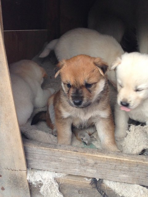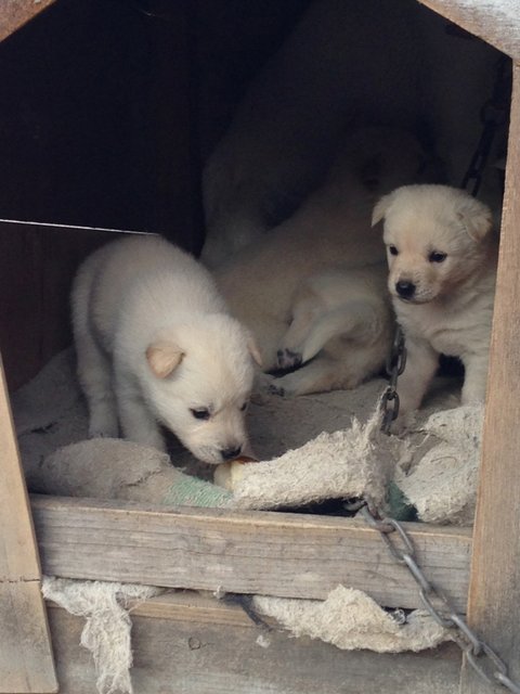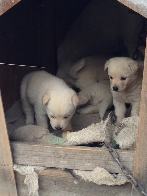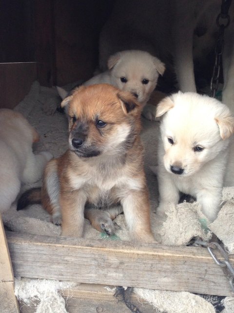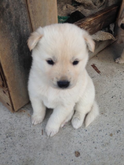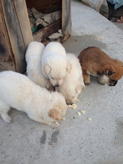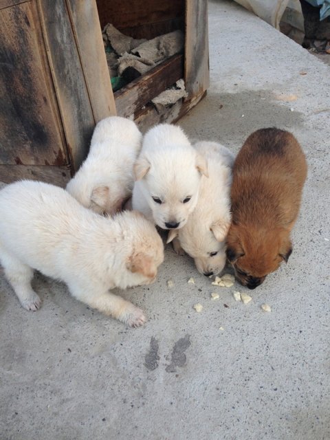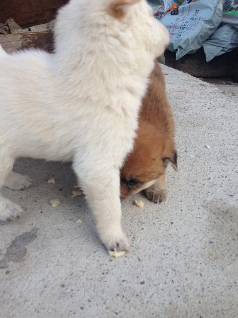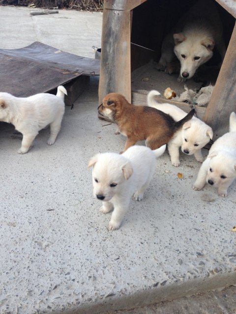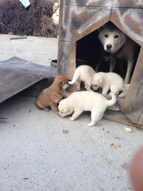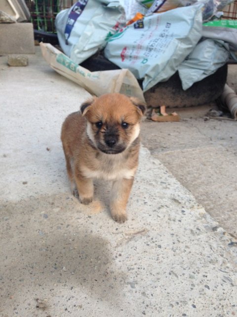 유일하게 털이 갈색인 강아지, 이름은 누룽지가 어미인 성은 백 이름은 설기 여사에게