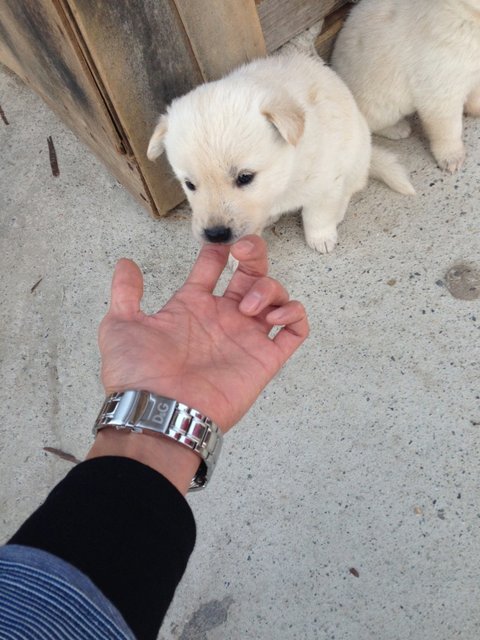 다시 보니 꼬리를 흔들며 격하게 반겨주는 조금 마른 백구.