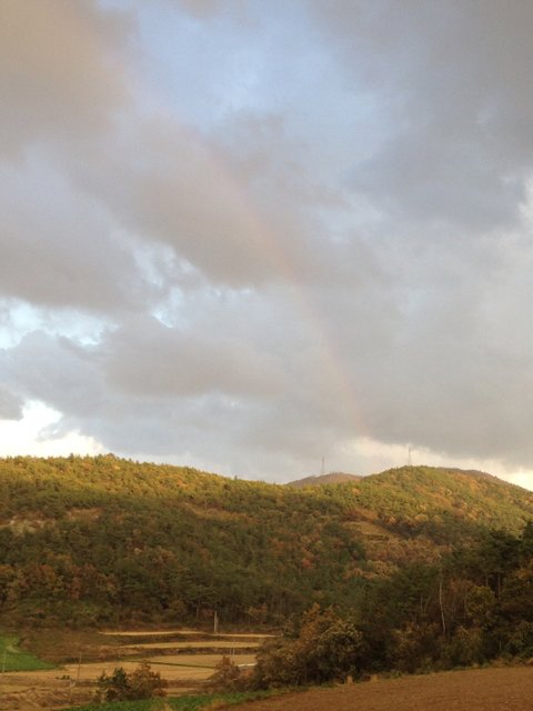다행이 비는 금방 그쳤고 하늘을 보니 오랜만에 보는 무지개가 떳어요.