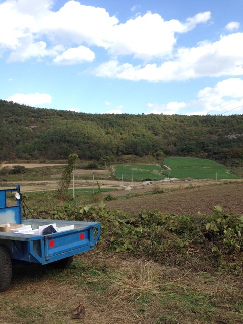 포크레인이 흙을 퍼나르면 거기에 돌과 나무를 걸러내고 삽질에... 곡괭이까지..