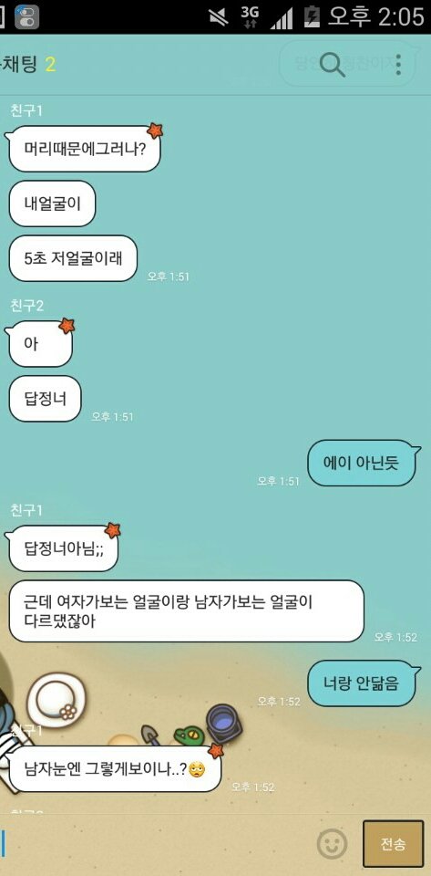 인터넷에서 답정너 글 볼때 에이 뭐 저런게다있어 이랬는데 내친구가 답정너였음ㅋㅋㅋㅋㅋㅋㅋㅋㅋㅋㅋ 얘 진짜 못생김 여기서 이 오빠란것도 사촌오빠 말하는듯.. 진짜 어이없ㅋㅋㅋㅋ닼ㅋㅋ