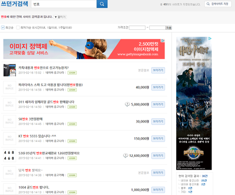 오늘도 중고사이트를 전전하면서 휴대폰 번호를 검색하고있었는데