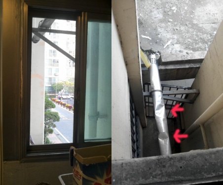 보일러관통같은 이 쇠파이프가 찌그러져 있는거임 딱 사람이 밟아서 무게때매