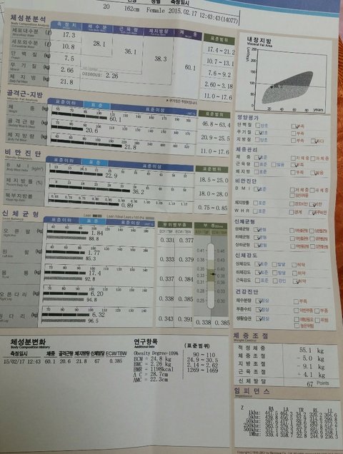 오늘 한 인바디 결과에요 2주중에 첫주는 정말 열심히했꼬 사실 저번주는 피자.닭발 이런걸 5일 먹었네요..체중은 1.5kg 줄고 체지방 -1.1, 골격근량 -0.3 인데 잘하고있는거 맞나요ㅠㅠ 골격근량이 줄어서 약간 그렇네요... 아 그리고 왼다리 부종이 늘었는데 어떻게 하나요. 줄은 기초대사량도요ㅠㅠ