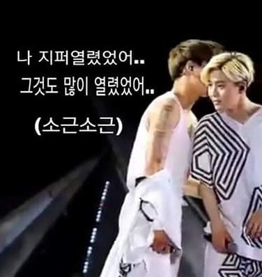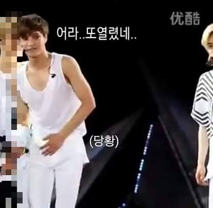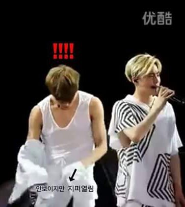 이거 그거임ㅋㅋㅋㅋ 지퍼가 열려서 종인이가 잠그려고 했는데 콘서트장인지 인식못하곸ㅋㅋㅋㅋ걍 대놓고 잠궈서 몇초후에 헐 이러면서 그제서야 자기집안방이 아니라 콘서트장인걸 인식 ㅋ 그래서 난리 치면서 형들한테 썰 푸는게 저 짤들이얔ㅋㅋㅋㅋㅋ