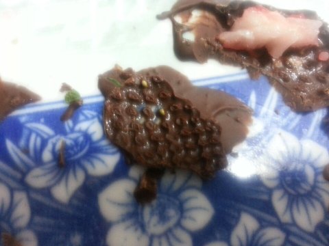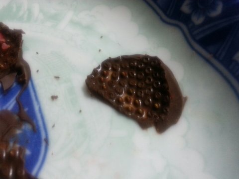 초코가 바닥에 붙어서 굳어서,....떼어낼때 ...........