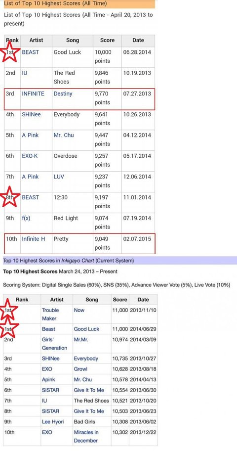 ㅋㄱㅋㅋㄱ니가 팬떨어졌다고 하는 비스트,인피니트 순위보시길