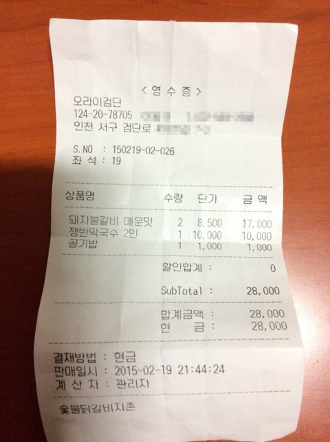 아 참, 이건 댁이 열심히 쳐먹고 가신 영수증입니다.
