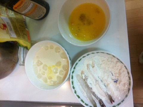 열씨미 새우에 밀가루뭍히고 계란옷 입히고 튀김반죽 묻히고