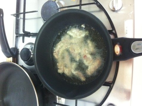 조리하던 친구한테 주워들은 밀게빵..... 튀김가루는 차갑게...