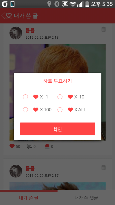 어차피 50이상으로는 게시물 주인한테 10씩 들어오는것 똑같으니까 ★딱 50하트 되도록★ 주면 돼.