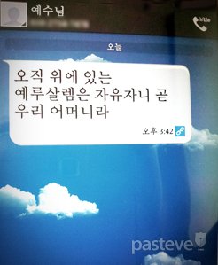 오직 위(하늘)에 있는 예루살렘은 자유자니 곧 우리 어머니라 (갈라디아서 4:26)