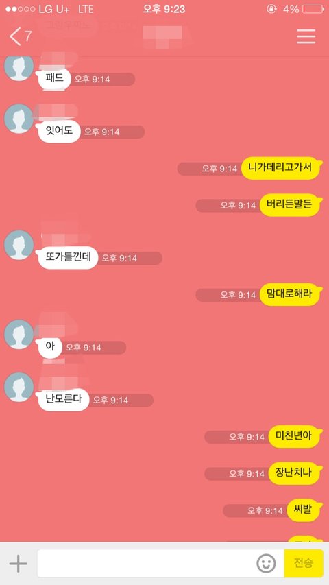 근데 이 미친년이 보낸 카톡^^