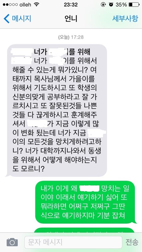 그리고 동생 나가고 언니한테 문자가 왔는데