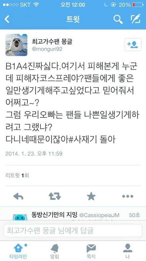 바나들은 이거에 대한 거라도 캉들이 사과 좀 해주었으면 하는 바램임