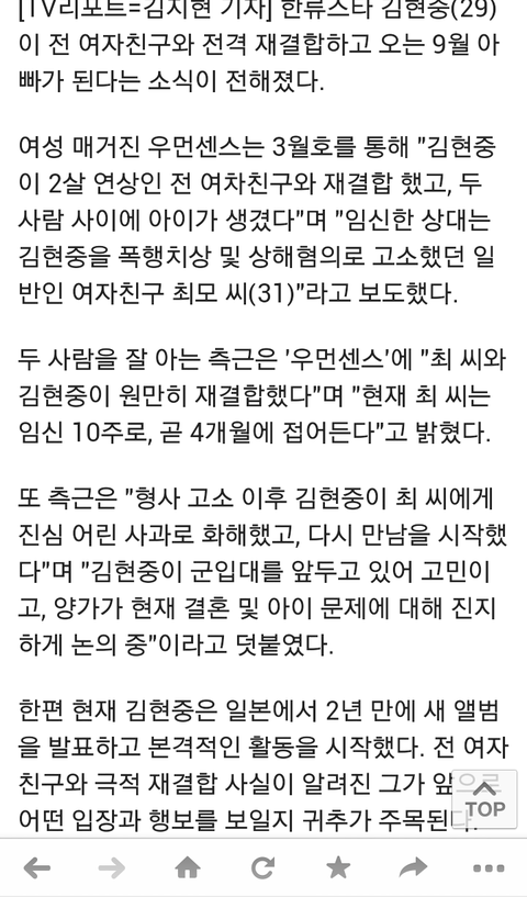 난 여자가 쓰레기라고봄 지혼자 북치고 장구치고 디스패치랑 고스톱 친거면서 김현중이 헤어지자고해서 빡쳐서 고소해놓고 화해를 빌미로 관계맺고 임신해서 결혼하자고 한것같음; 걍 내 생각임