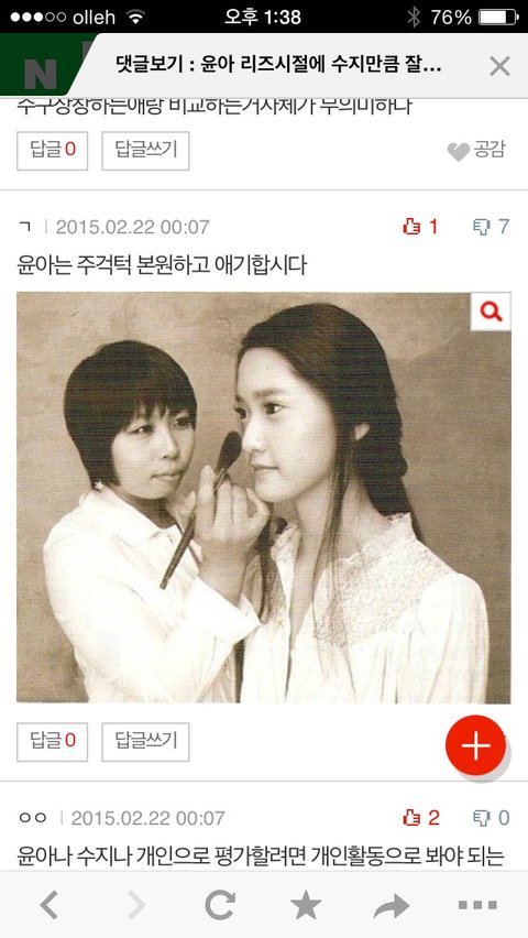 어제 수지랑윤아언급한글에 윤아 못나온사진 다섯개연속으로 투척하고간 분있던데ㅌㅋㅋㅋ그건또어떻게찾음ㅋㅋㅋㅋㅋㅋ걍왜저장했어ㅋㅋㅋㅋ