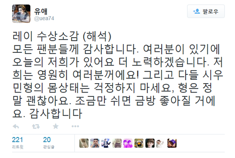 (소송 이후 처음 트위터에 글을 남기며)