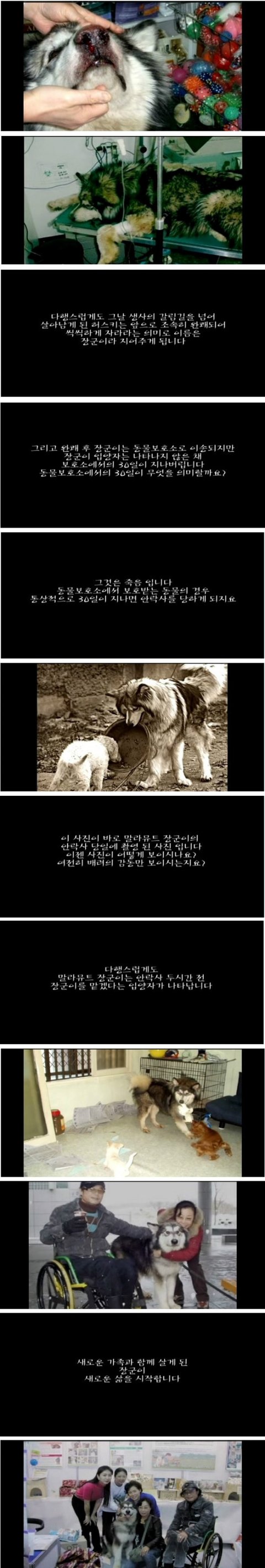 안락사 직전 자신의 밥을 나눠주는 말라뮤트 장군이..