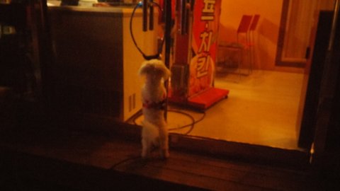 꼬미는 슈퍼 못들어가니 저랑 꼬미는 밖에서 기다렸는데