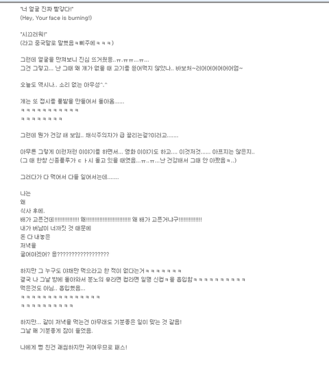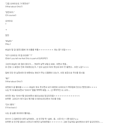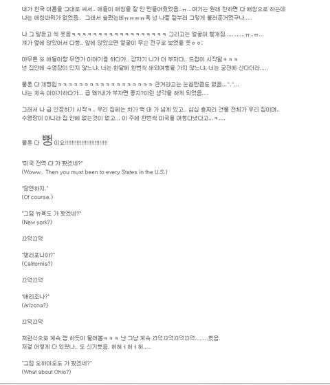 안녕하세요 , 긴글은 미쿡언니의 캡쳐본을 들고오고 짧아서 제가 타이핑할수있는것들은 타이핑해서 가져오겠습니다 !! 캡쳐하는 방법가르쳐주신 민드모아님감사드려요