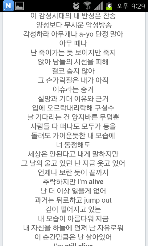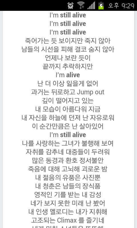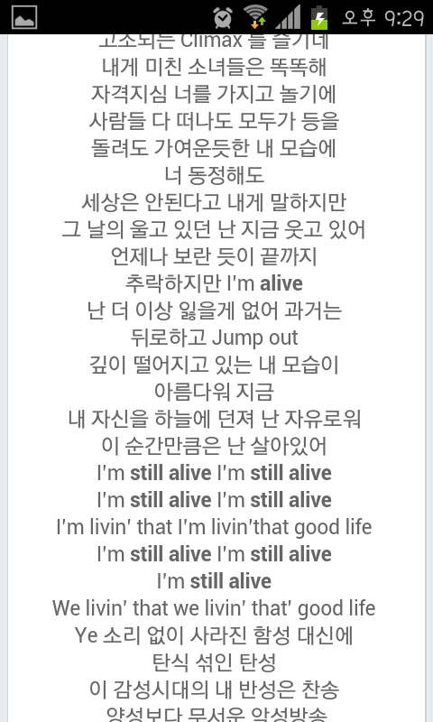 저번에톡선에 가사좋은노래에 still alive 있어서
