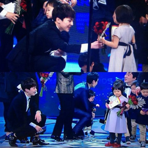 이거 131224 릴콘 짤이잖아. 난 이 짤 볼 때만 해도... 그냥 재밌다고 생각했지... 민석이랑 사랑이가 만나는 투샷을 진짜로 볼 줄은 몰랐었당. ㅋㅋㅋㅋ 이 시상식 후에 심지어 시우민 입덕방송이었다고 기사가 날 정도로 아가들과 민석이가 너무 이뻤었지? 나 웅녀에게는 3260번 째 재입덕방송이었따!!!! >.< 아가가 아가를 저렇게 사랑스럽게 쳐다보다니.. 슈돌 아가들도 민석이도 정말 천사같았음. ㅋㅋ 오늘따라 다시 보고 싶어서 갤러리를 뒤졌네. ㅋㅋㅋㅋ 웅녀들 이쁜 천사들 보고 좋은 꿈 꿔!!!