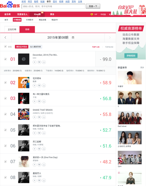 2015년 저번주 바이두 차트 1위