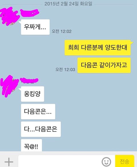 그래서 그 티켓을 다른분께 드려야한다고 톡으로 보냈는데