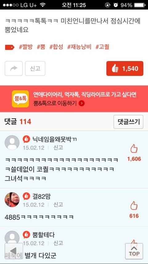 댓글 많은 톡