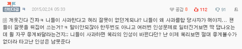 혜리가 잘못한게 있지 나도 그건 헤리가 잘못한걸 알고 스스로 고쳐야한다고 생각해