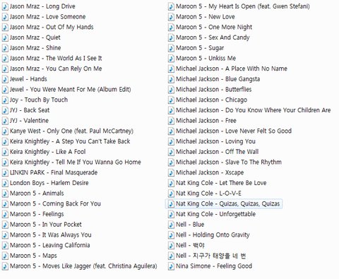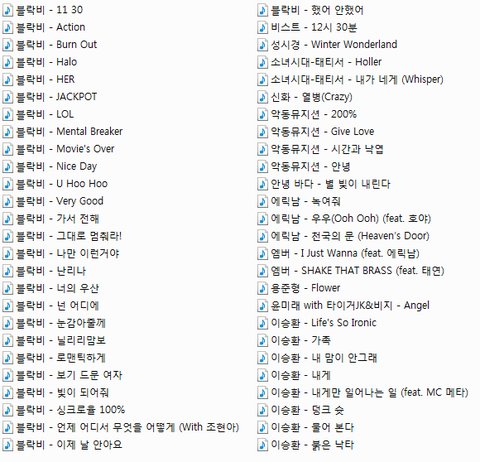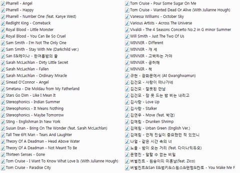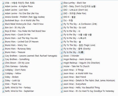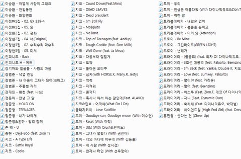 지금 내가 듣고 다니는 노래들 캡쳐했으니 다른 곡들로 좀 부탁행ㅋ