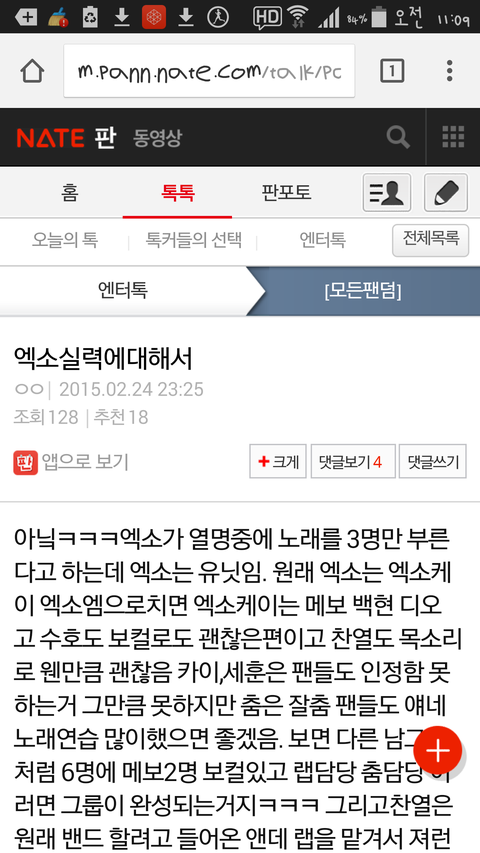 엔터톡에 엑소 쉴드글 보는 데