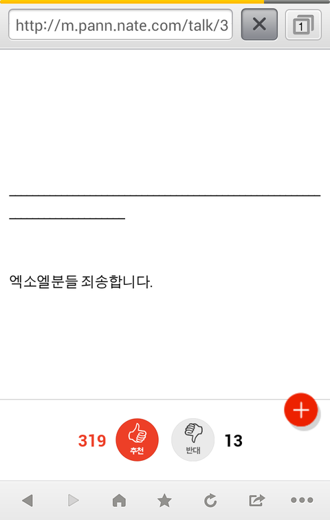 그런데 오늘 판에 들어와보니까 한 인스피릿분이 '엑소엘분들 죄송합니다'라고 언급해주신 글을 봤어요.