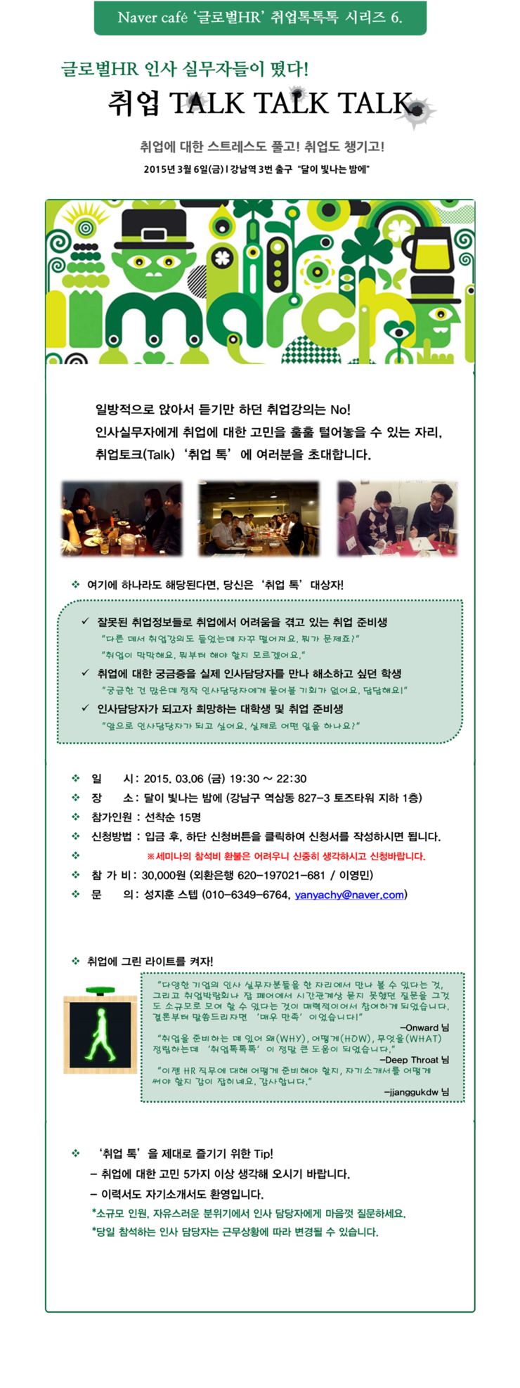실제 인사담당자를 만나 취업에 대한 궁금증을 해소할 수 있는 아주 좋은 기회가 찾아 왔습니다! 그동안 취업 톡톡톡을 기다려준 글로벌HR카페의 취업준비생 여러분들! 이번 취업 톡에서 만나요.^^