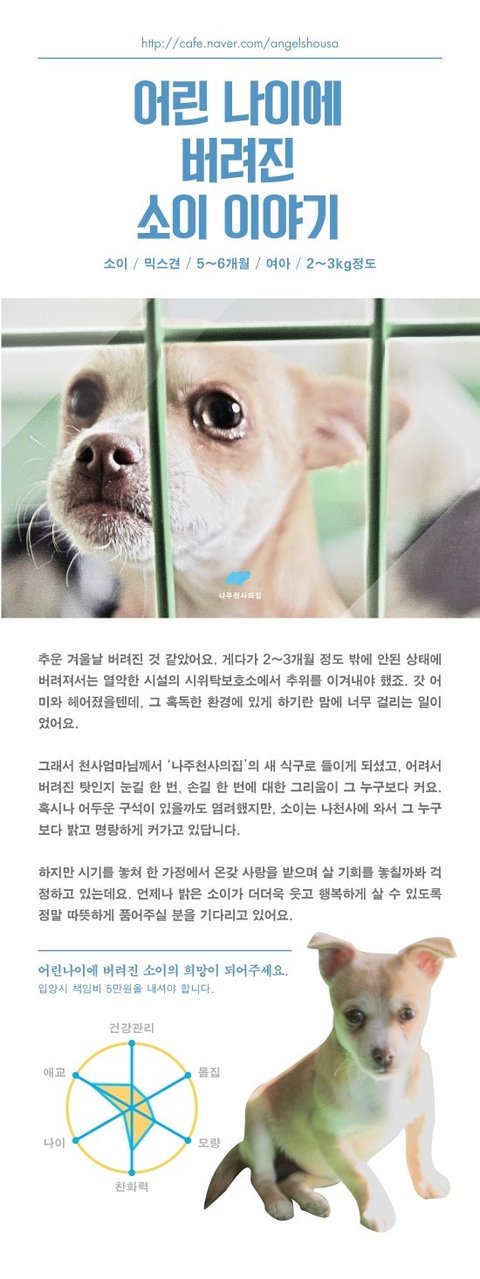 입양안내 및 신청서 : http://cafe.naver.com/angelshousa/8579