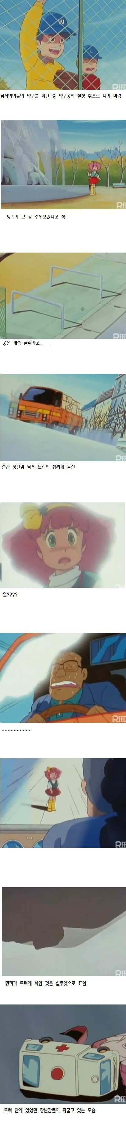제작자들이 빡쳐서 밍키가 그 회사에서 파는 차에 치여서 죽어버리는 것'으로 엔딩을 만들었다는 것