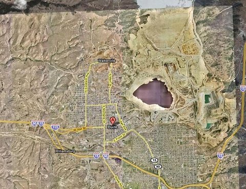 미국 몬타나 부트에 위치한 구리 광산이 폐쇄된 후 남긴 것이다
