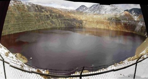 약 280m높이까지 산성 물이 차 있는데 카드뮴과 비소 등 위험한 중금속과 화학 물질이 녹아 있다