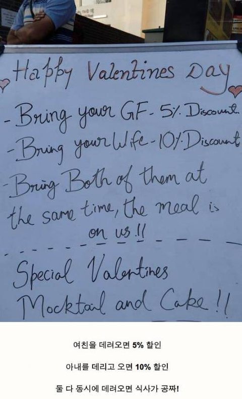 발렌타인 데이에 있었던 어느 식당의 이벤트