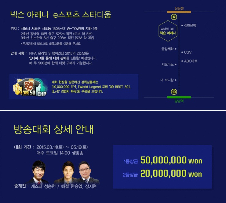 3월14일부터 진행되는 이번 챔피언쉽을 맞아 2월 28일(토) FIFA Online 3 챔피언쉽 2015 개막특집 라이브쇼가 진행된다.