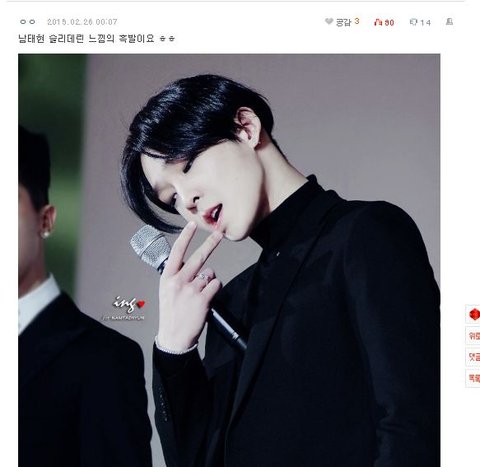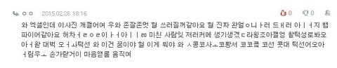 내 비루한 생각으로 저 말들을 해석해보자면 "와 엑415454545셀(필터링)인데 이사진 개쩔어여 우와 존잘존멋 헐 쓰러질꺼같아요 헐 진짜 완전 어쩌구 저쩌구 뱀파이어 같아요 헐 미친 사람이 저러케 생기셨냐(?)왕조아쩔어 와 턱선봐 와대박와 턱선 와 이건 꿈이야 헐 이게 뭐야 와 코코코코봐 코코코 코선 콧대 턱선 어우아 손가락이 마음대로(?) 움직여 이게 아닐까.....ㅋㅋㅋㅋㅋㅋㅋ