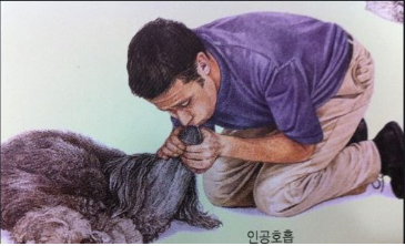 인공호흡을 하는 방법으로는 개를 옆으로 눕히고 목을 앞쪽으로 빼고 기도를 확보 !!