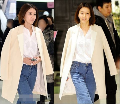 간지나게 베이지색 재킷 어깨에 딱 걸쳐주고,