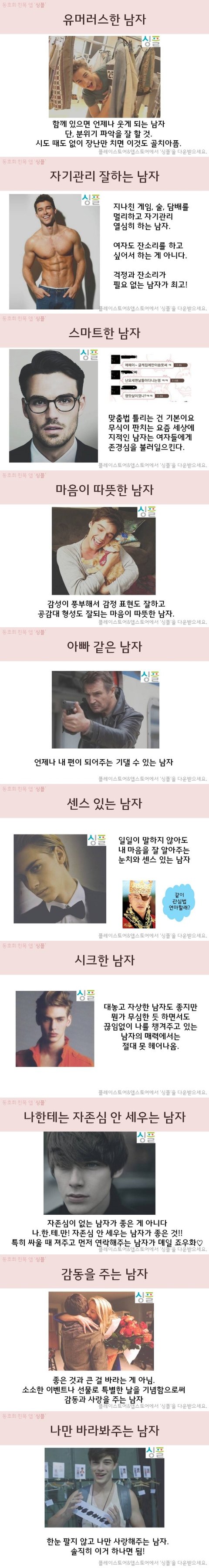 저걸 정답이라고 생각하는건 오산이죠 여자들이 좋아하게되는 이유는 그사람만의 개성과 매력에 끌리는거지 다저런다고 좋아하는건 아니죵