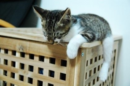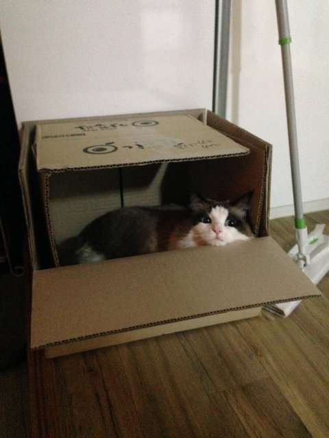 라떼가 상자에서 놀고 있을때에요