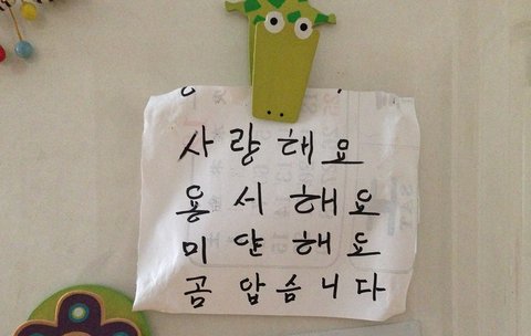 연세 높으신 저희 어머님이 직접 쓰셔서 냉장고에 붙여 놓으신 메모지...