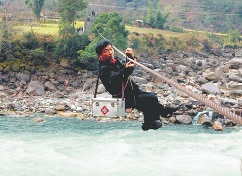 지난 20여년간 덩첸두이는 라마디 마을 등 산골마을에 5000번 이상 왕진을 다녔다. 협곡의 쇠줄을 탄 횟수는 헤아릴 수 없다. 처음에는 쇠줄을 타는데 익숙치 못해 맞은편 쇠줄 기둥에 부딪친 적도 적지 않았다. 약상자도 여러 번 깨뜨렸다.