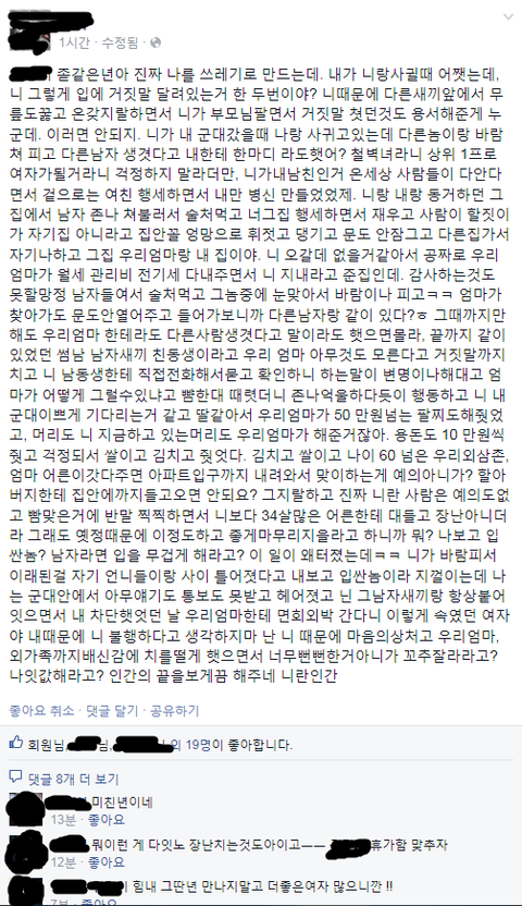위에 캡쳐는 군인인 친구가 휴가나와서 쓴 글인데