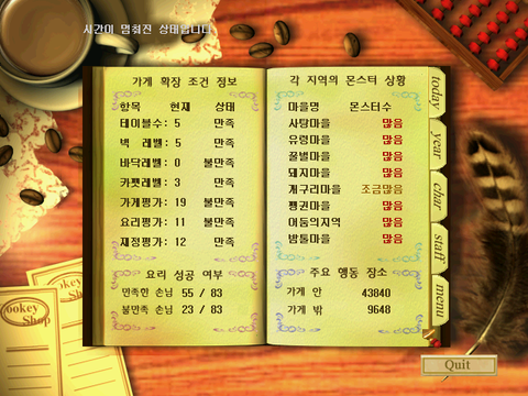 자본에 맞게 적당한 규모로 가게를 차려서 재료사고 했던 게임 저는 별 재미 없었던걸로 기억하는데 인기는 많았어요